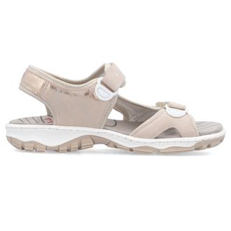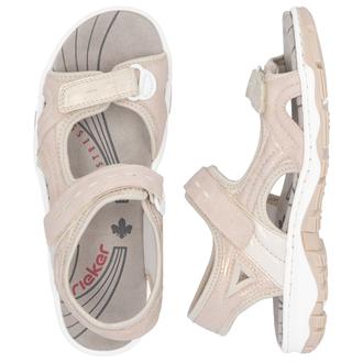 Сандалии Rieker арт. 68866-31. Летний сезон. Фасон - Сандалии. Застёжка - две липучки. Каблук - танкетка низкая. Материал - экокожа,текстиль. Материал подкладки - текстиль. Вид стельки - текстильная стелька. Высота каблука - 3 см. Толщина подошвы - 1,5 см.