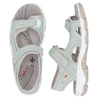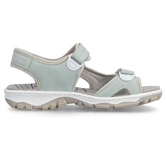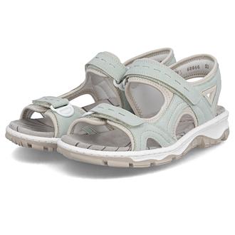 Сандалии Rieker арт. 68866-52. Летний сезон. Фасон - Сандалии. Застёжка - две липучки. Каблук - спортивная подошва. Материал - экокожа,текстиль. Материал подкладки - текстиль. Вид стельки - текстильная стелька. Высота каблука - 3 см. Толщина подошвы - 1,5 см.