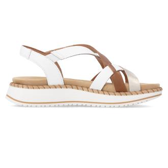 Эти стильные женские сандалии от бренда Remonte станут идеальным выбором для летнего сезона. Модель выполнена из комбинации качественных материалов в белом, коричневом и золотистом цветах. Удобная низкая танкетка обеспечивает комфорт при длительной ходьбе, а регулируемый ремешок на липучке гарантирует надежную фиксацию стопы. Мягкая стелька позволяет ногам оставаться отдохнувшими в течение всего дня, а лаконичный дизайн отлично дополнит любой повседневный образ. Летний сезон. Фасон - Сандалии. Застёжка - липучка. Каблук - танкетка низкая. Материал - натуральная кожа,экокожа. Материал подкладки - искусственная кожа. Вид стельки - велюровая стелька. Высота каблука - 3,5 см. Толщина подошвы - 2 см.