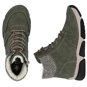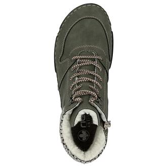 Повседневные ботинки Rieker арт. 45955-54. Зимний сезон. Фасон - Повседневные ботинки. Застёжка - шнуровка,молния. Каблук - спортивная подошва. Материал - экокожа,текстиль. Материал подкладки - искусственный мех. Вид стельки - велюровая стелька. Высота каблука - 3,5 см. Толщина подошвы - 2 см. Высота обуви с каблуком - 15 см.