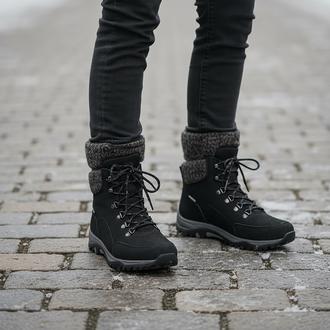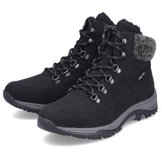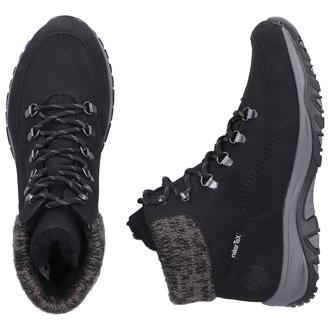 Повседневные ботинки Rieker арт. M9610-00. Зимний сезон. Фасон - Повседневные ботинки. Застёжка - шнуровка. Каблук - спортивная подошва. Материал - экокожа,текстиль. Материал подкладки - искусственный мех. Вид стельки - съёмная велюровая стелька. Высота каблука - 3,4 см. Толщина подошвы - 2 см. Высота обуви с каблуком - 14 см.
