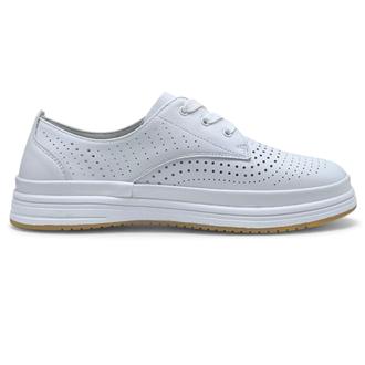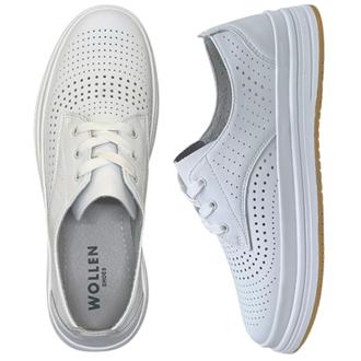 Мокасины Wollen арт. FL098-01SK-WT. Весенний сезон. Фасон - Мокасины. Застёжка - шнуровка. Каблук - танкетка низкая. Материал - натуральная кожа. Материал подкладки - натуральная кожа. Вид стельки - кожаная стелька. Высота каблука - 2,5 см. Толщина подошвы - 1,5 см.
