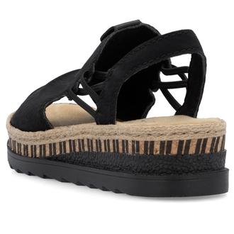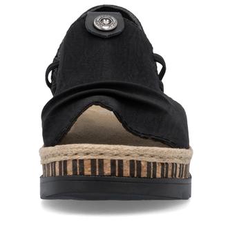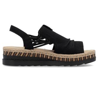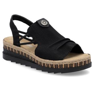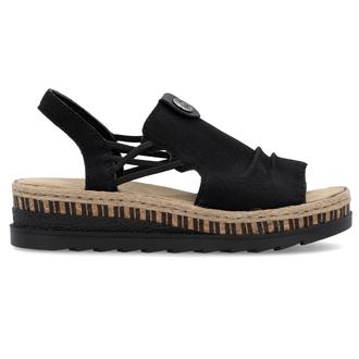 Босоножки Rieker арт. V7972-00. Летний сезон. Фасон - Босоножки. Каблук - танкетка низкая. Материал - экокожа. Материал подкладки - текстиль. Вид стельки - текстильная стелька. Высота каблука - 4,4 см. Толщина подошвы - 2,5 см.