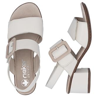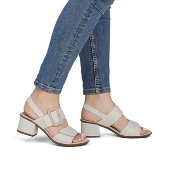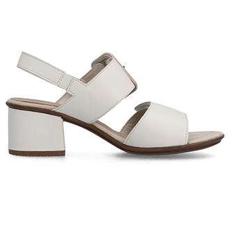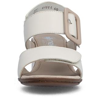 Модельные босоножки Rieker арт. 64664-60. Летний сезон. Фасон - Модельные босоножки. Застёжка - две липучки. Каблук - каблук средний. Материал - натуральная кожа,экокожа. Материал подкладки - искусственная кожа. Вид стельки - текстильная стелька. Высота каблука - 5,1 см.