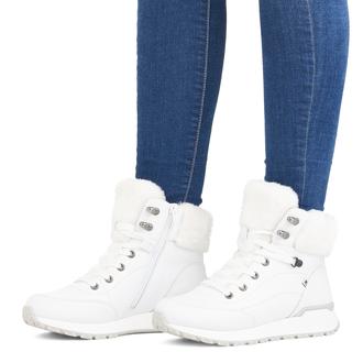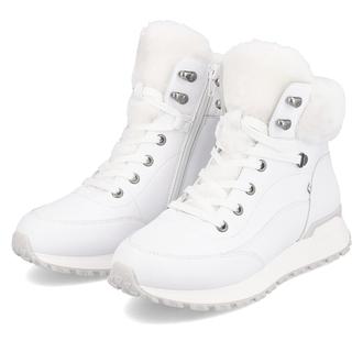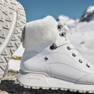 Спортивные ботинки Rieker Evolution арт. W0670-80. Зимний сезон. Фасон - Спортивные ботинки. Застёжка - шнуровка. Каблук - спортивная подошва. Материал - натуральная кожа,текстиль. Материал подкладки - натуральная овечья шерсть. Вид стельки - съёмная стелька Evolution Soft. Высота каблука - 3 см. Толщина подошвы - 2 см. Высота обуви с каблуком - 17 см.
